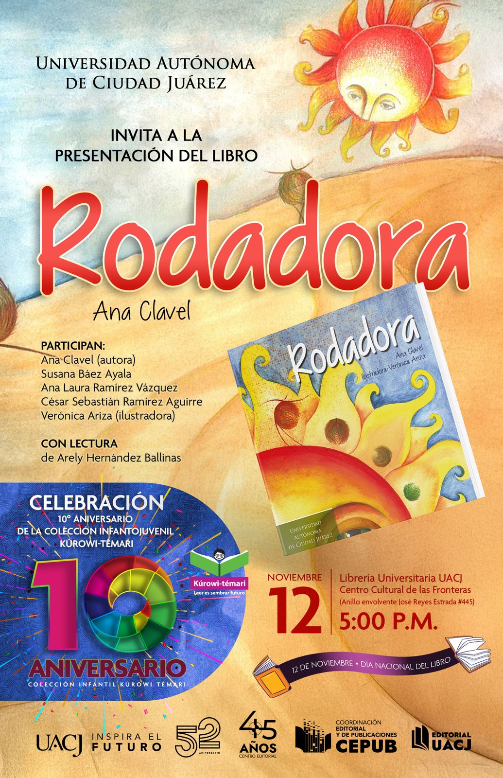 Presentación del libro Rodadora 12 de noviembre Horario: 17:00 Librería Universitaria UACJ